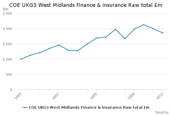 Download this time seriesCOE UKG3 West Midlands Finance & insurance Raw total £m