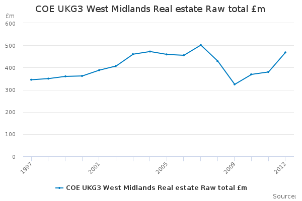 Download this time seriesCOE UKG3 West Midlands Real estate Raw total £m
