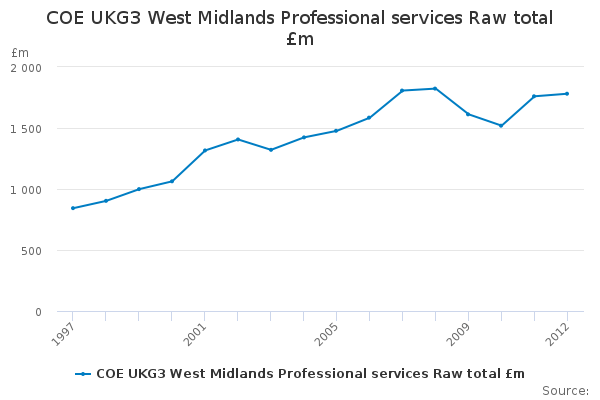 Download this time seriesCOE UKG3 West Midlands Professional services Raw total £m
