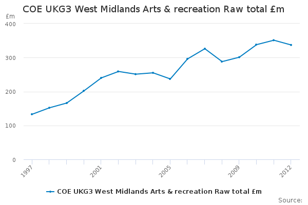 Download this time seriesCOE UKG3 West Midlands Arts & recreation Raw total £m