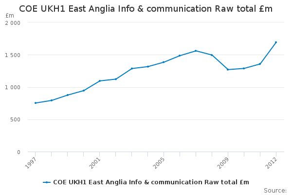 Download this time seriesCOE UKH1 East Anglia Info & communication Raw total £m