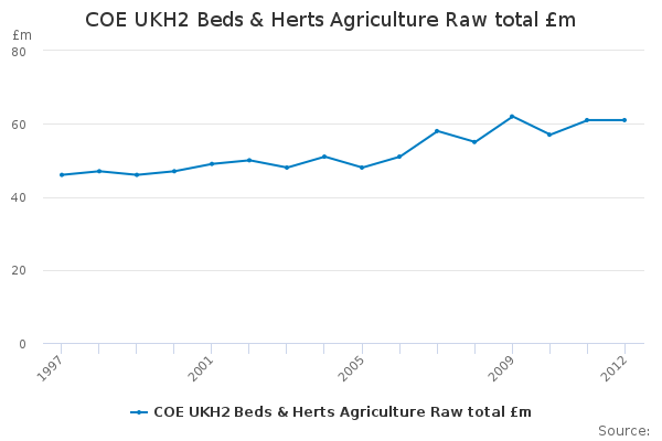Download this time seriesCOE UKH2 Beds & Herts Agriculture Raw total £m