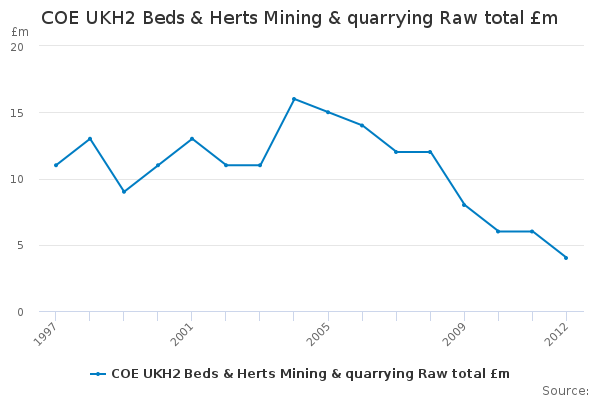 Download this time seriesCOE UKH2 Beds & Herts Mining & quarrying Raw total £m