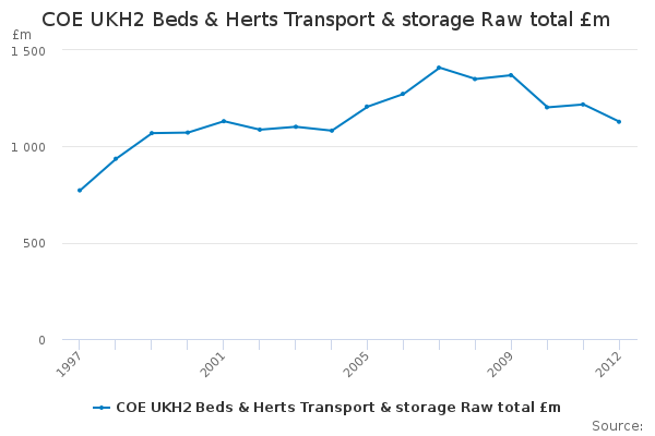 Download this time seriesCOE UKH2 Beds & Herts Transport & storage Raw total £m