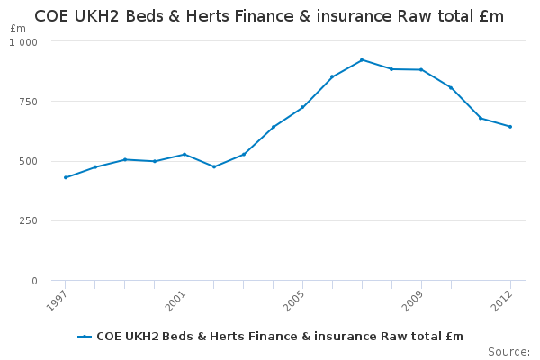 Download this time seriesCOE UKH2 Beds & Herts Finance & insurance Raw total £m