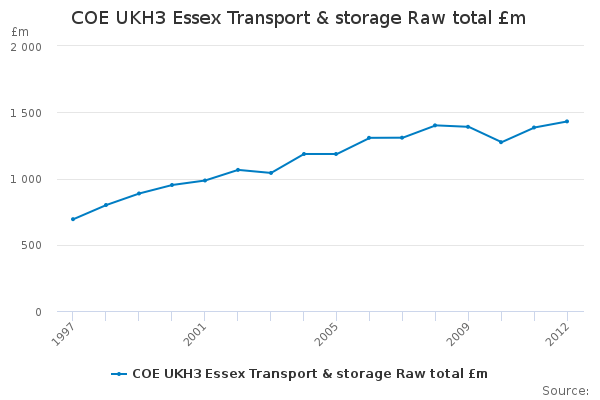 Download this time seriesCOE UKH3 Essex Transport & storage Raw total £m