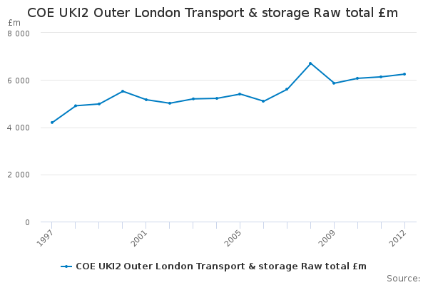 Download this time seriesCOE UKI2 Outer London Transport & storage Raw total £m