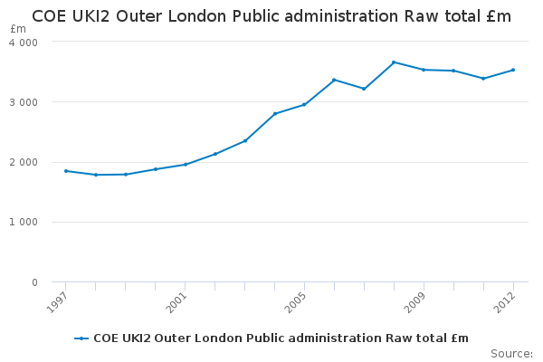 Download this time seriesCOE UKI2 Outer London Public administration Raw total £m