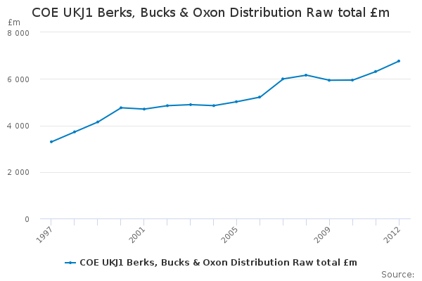 Download this time seriesCOE UKJ1 Berks, Bucks & Oxon Distribution Raw total £m