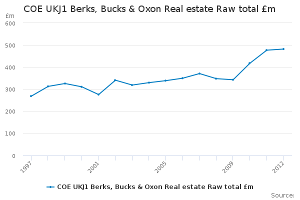 Download this time seriesCOE UKJ1 Berks, Bucks & Oxon Real estate Raw total £m
