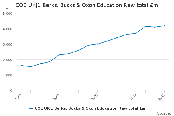 Download this time seriesCOE UKJ1 Berks, Bucks & Oxon Education Raw total £m