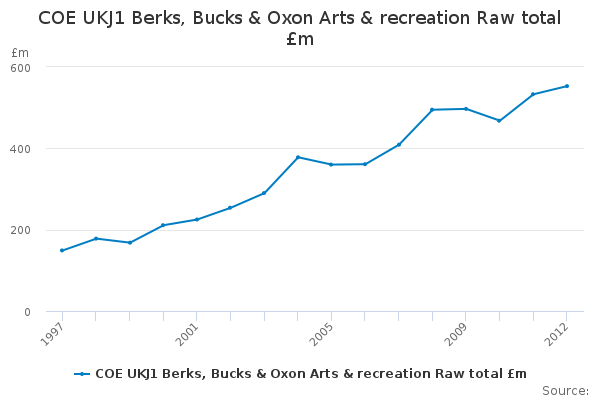Download this time seriesCOE UKJ1 Berks, Bucks & Oxon Arts & recreation Raw total £m