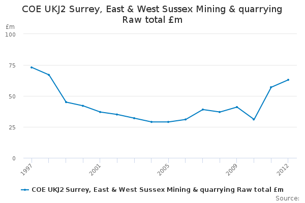 Download this time seriesCOE UKJ2 Surrey, East & West Sussex Mining & quarrying Raw total £m
