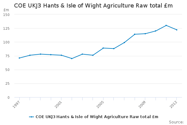 Download this time seriesCOE UKJ3 Hants & Isle of Wight Agriculture Raw total £m