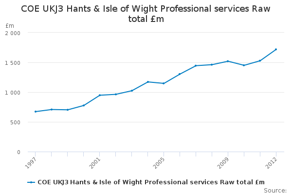 Download this time seriesCOE UKJ3 Hants & Isle of Wight Professional services Raw total £m