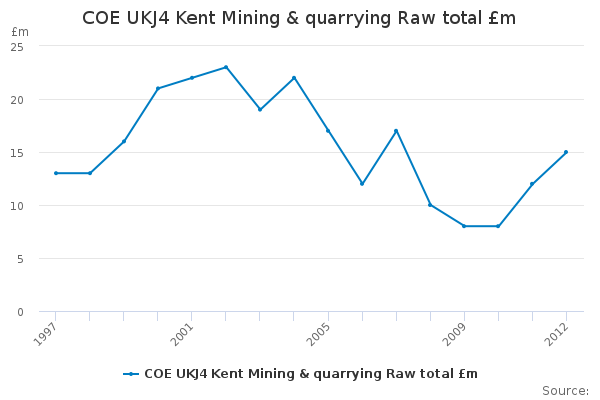 Download this time seriesCOE UKJ4 Kent Mining & quarrying Raw total £m