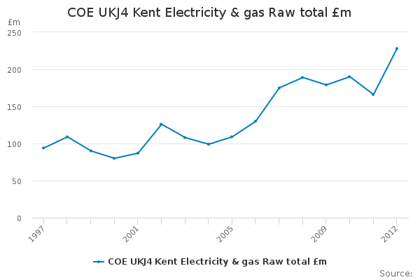 Download this time seriesCOE UKJ4 Kent Electricity & gas Raw total £m
