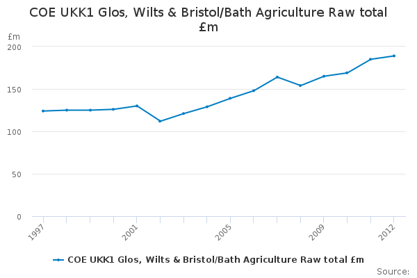Download this time seriesCOE UKK1 Glos, Wilts & Bristol/Bath Agriculture Raw total £m
