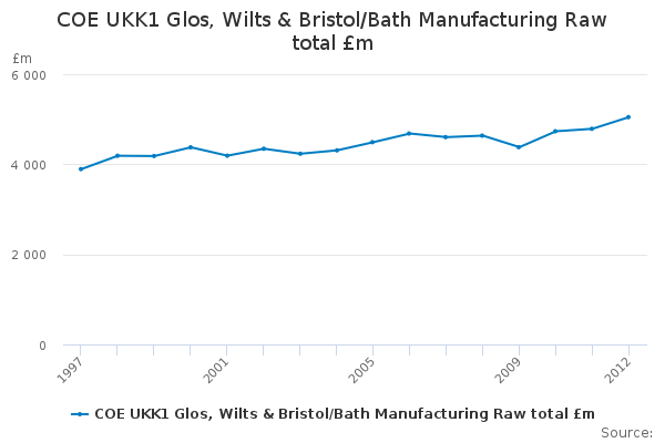 Download this time seriesCOE UKK1 Glos, Wilts & Bristol/Bath Manufacturing Raw total £m
