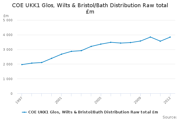Download this time seriesCOE UKK1 Glos, Wilts & Bristol/Bath Distribution Raw total £m