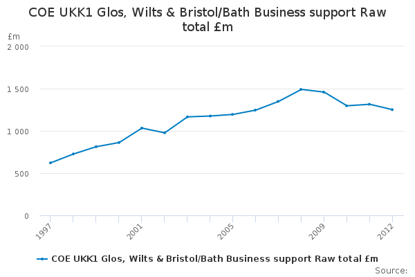 Download this time seriesCOE UKK1 Glos, Wilts & Bristol/Bath Business support Raw total £m