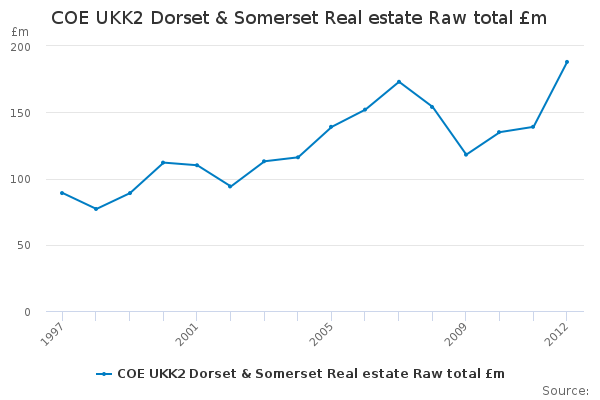 Download this time seriesCOE UKK2 Dorset & Somerset Real estate Raw total £m