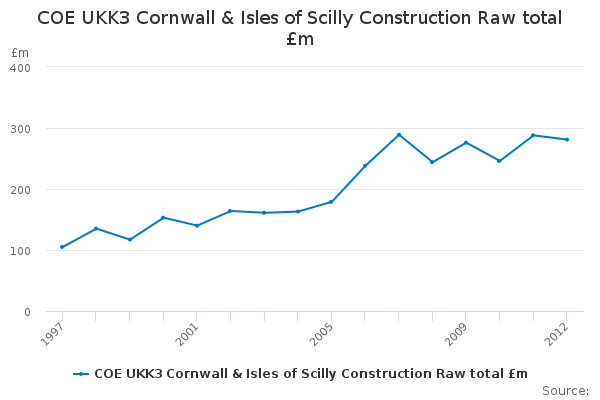 Download this time seriesCOE UKK3 Cornwall & Isles of Scilly Construction Raw total £m