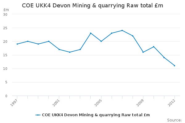 Download this time seriesCOE UKK4 Devon Mining & quarrying Raw total £m