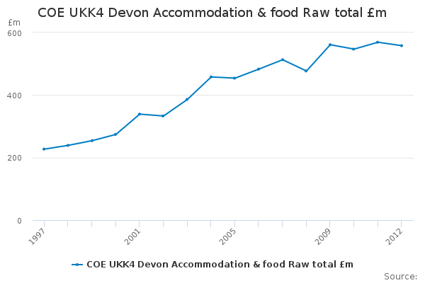 Download this time seriesCOE UKK4 Devon Accommodation & food Raw total £m