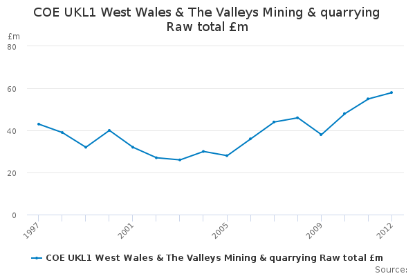 Download this time seriesCOE UKL1 West Wales & The Valleys Mining & quarrying Raw total £m