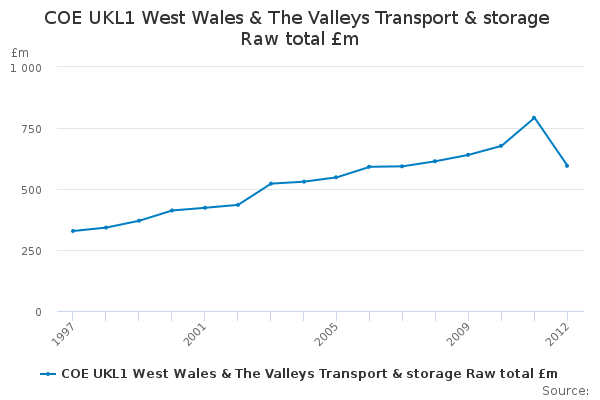 Download this time seriesCOE UKL1 West Wales & The Valleys Transport & storage Raw total £m