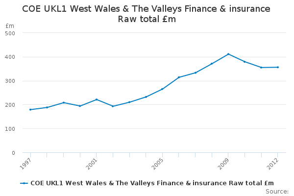 Download this time seriesCOE UKL1 West Wales & The Valleys Finance & insurance Raw total £m