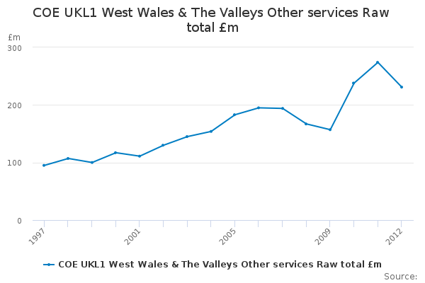 Download this time seriesCOE UKL1 West Wales & The Valleys Other services Raw total £m