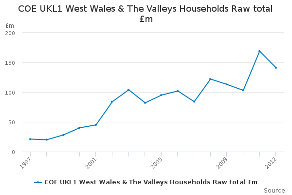 Download this time seriesCOE UKL1 West Wales & The Valleys Households Raw total £m