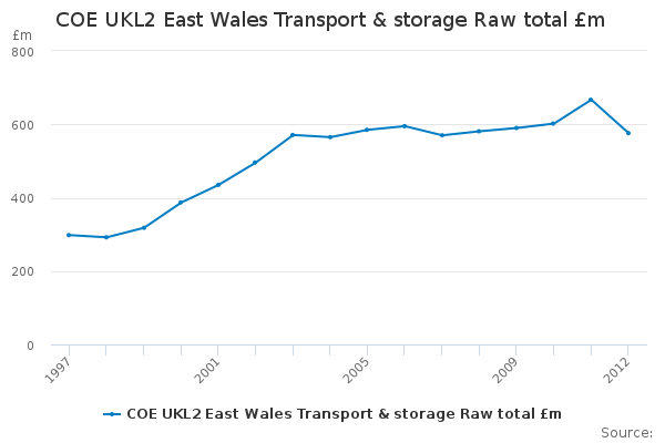 Download this time seriesCOE UKL2 East Wales Transport & storage Raw total £m