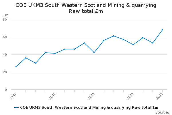 Download this time seriesCOE UKM3 South Western Scotland Mining & quarrying Raw total £m