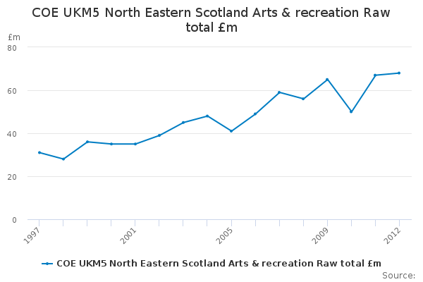 Download this time seriesCOE UKM5 North Eastern Scotland Arts & recreation Raw total £m