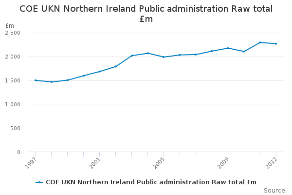 Download this time seriesCOE UKN Northern Ireland Public administration Raw total £m