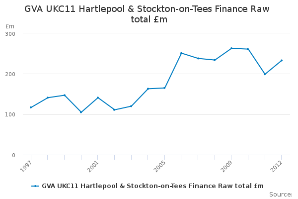 Download this time seriesGVA UKC11 Hartlepool & Stockton-on-Tees Finance Raw total £m
