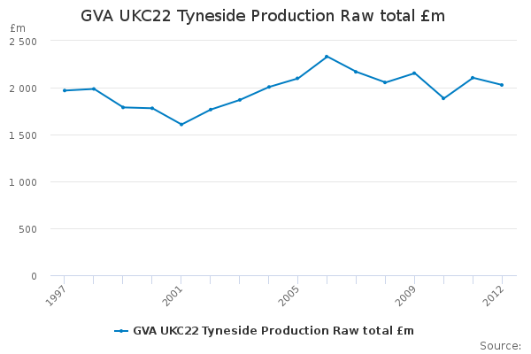 Download this time seriesGVA UKC22 Tyneside Production Raw total £m