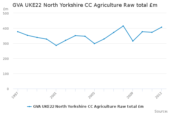 Download this time seriesGVA UKE22 North Yorkshire CC Agriculture Raw total £m