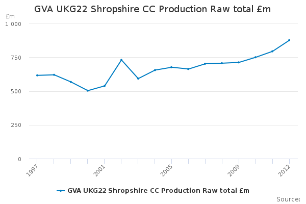 Download this time seriesGVA UKG22 Shropshire CC Production Raw total £m
