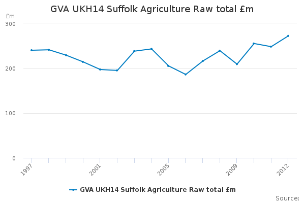 Download this time seriesGVA UKH14 Suffolk Agriculture Raw total £m