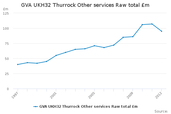 Download this time seriesGVA UKH32 Thurrock Other services Raw total £m