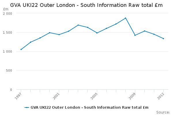 Download this time seriesGVA UKI22 Outer London - South Information Raw total £m