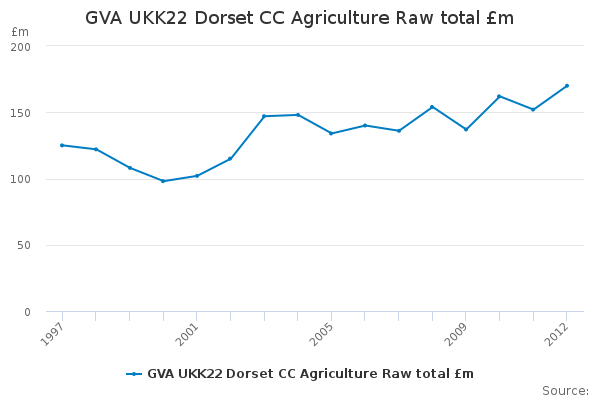 Download this time seriesGVA UKK22 Dorset CC Agriculture Raw total £m