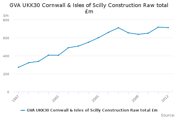 Download this time seriesGVA UKK30 Cornwall & Isles of Scilly Construction Raw total £m