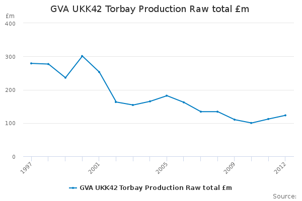 Download this time seriesGVA UKK42 Torbay Production Raw total £m