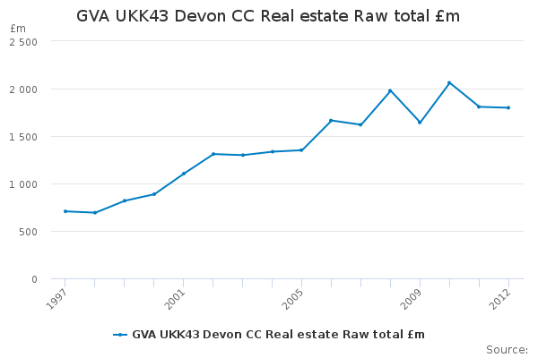 Download this time seriesGVA UKK43 Devon CC Real estate Raw total £m