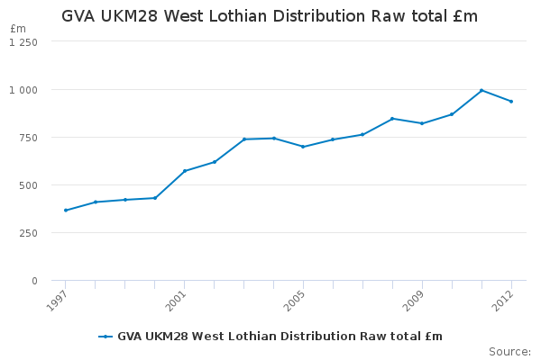 Download this time seriesGVA UKM28 West Lothian Distribution Raw total £m